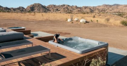 Il se trouve sur une propriété de 90 acres et comprend sa propre montagne tout en partageant une frontière d’un demi-mile le long du parc national de Joshua Tree. C’est une base idéale pour ceux qui veulent parcourir des kilomètres et des kilomètres de sentiers qui serpentent à travers de gigantesques rochers, des formations rocheuses uniques comme « Skull Rock », qui ressemble à un crâne, et toutes sortes de plantes du désert, y compris les arbres de Josué.